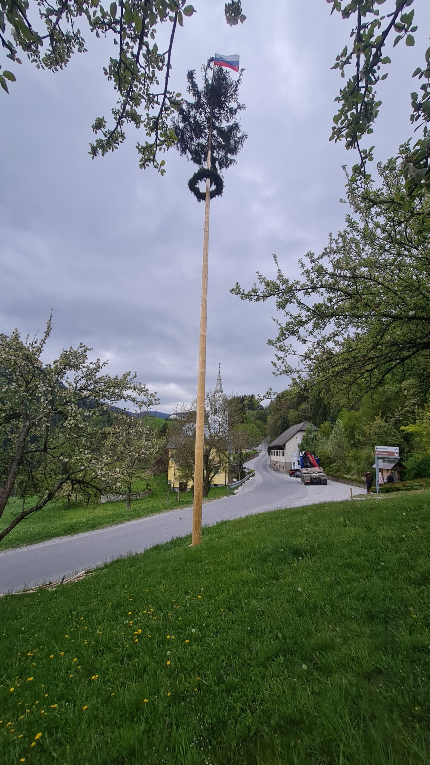 V ponedeljek, 22.4.2024, smo se člani Društva Vulkan zbrali pri cerkvi z namenom, da postavimo letošnji mlaj. Naši fantje so smreko podrli pod Smrekovcem, jo ogulili in dostavili na parkirišče. Letos sta nam smreko darovala Franc in Darinka Maze. Za naše priden fante sta pripravila tudi okusno malico, zato se jima na tem mestu prav lepo zahvaljujemo, kot tudi vsem ostalim, ki so sodelovali pri pripravi in postavitvi mlaja. Priprava mlajev je potekala dokaj hitro, saj je ekipa za pripravo in postavitev mlajev že lepo utečena. Spletli smo venec iz smrekovih vej, ga obesili pod krošnjo, na vrh pa obesili zastavo. Sledila je glavna atrakcija dneva. Postavitev le-tega. Pri tem nam je tudi letos pomagal Domen Mazej, saj bi bilo ročno dvigovanje, kot v starih časih, prenaporno in tudi ne ravno varno. Tako pa je bil mlaj hitro postavljen v pripravljeno luknjo. Sledilo je le še zaključno delo zasipanja in utrditev luknje. Nekaj časa smo ga opazovali, občudovali, ga slikali, potem pa smo se lotili pospravljanja. Ko je bilo vse končano in pospravljeno, je sledila obvezna »veselica«, saj je bilo potrebno nazdraviti na srečno in uspešno akcijo. Pa tudi na to, da bo ponosno in varno stal še cel naslednji mesec in krasil našo vas ter prijazno pozdravljal krajane in obiskovalce.