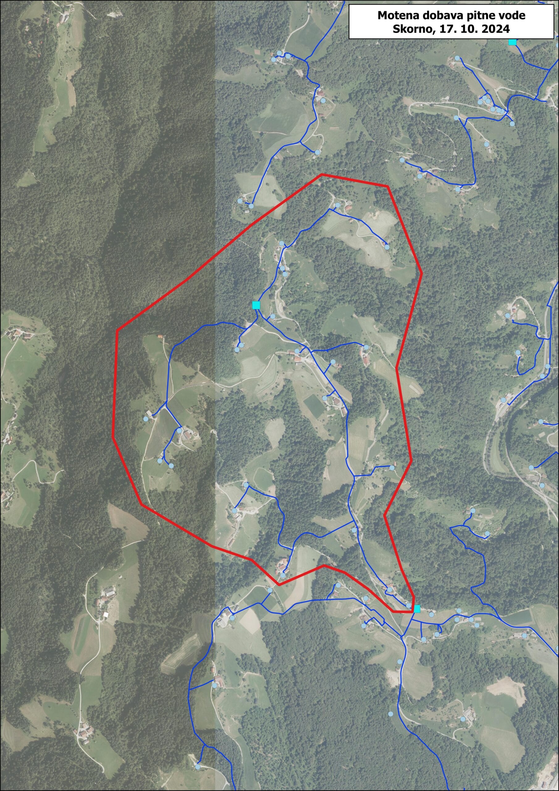 Komunalno podjetje Velenje obvešča uporabnike na območju naselja Skorno v občini Šmartno ob Paki ter dela naselja Skorno pri Šoštanju, da bo v četrtek, 17. 10. 2024, med 8. in 14. uro, prekinjena oz. motena dobava pitne vode zaradi nujnih vzdrževalnih del na javnem vodovodu.
