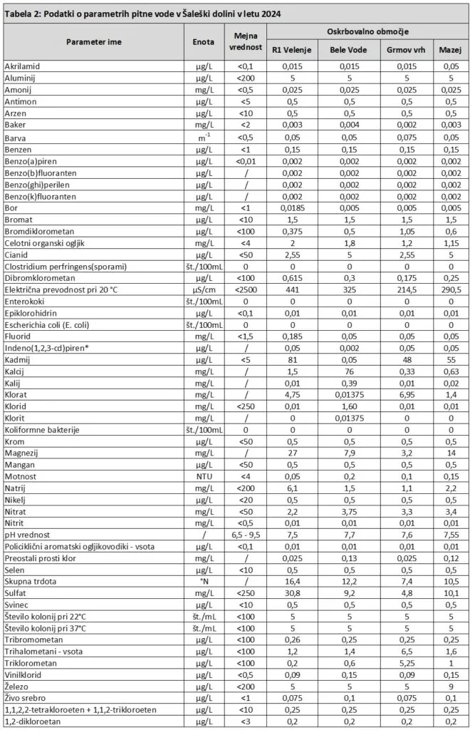 Pitna voda v Šaleški dolini je bila v letu 2024 zdravstveno ustrezna in varna za pitje.