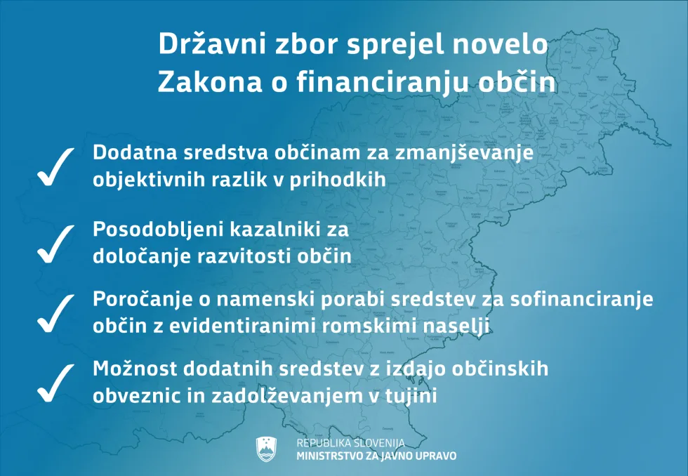 Novela Zakona o financiranju občin med drugim zagotavlja sistemske rešitve glede izračuna povprečnine in dodatna sredstva za zmanjšanje objektivnih razlik med občinami