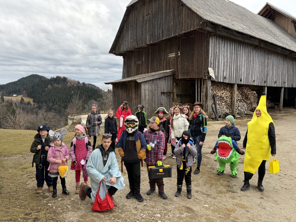 Od hiše do hiše, od vrat do vrat,prinašamo smeh vam in s smehom pomlad.Zato pa nam dajte en dinarček dva,tri krofe, tri bobe in košček mesa. Je odmevalo v zgornjem