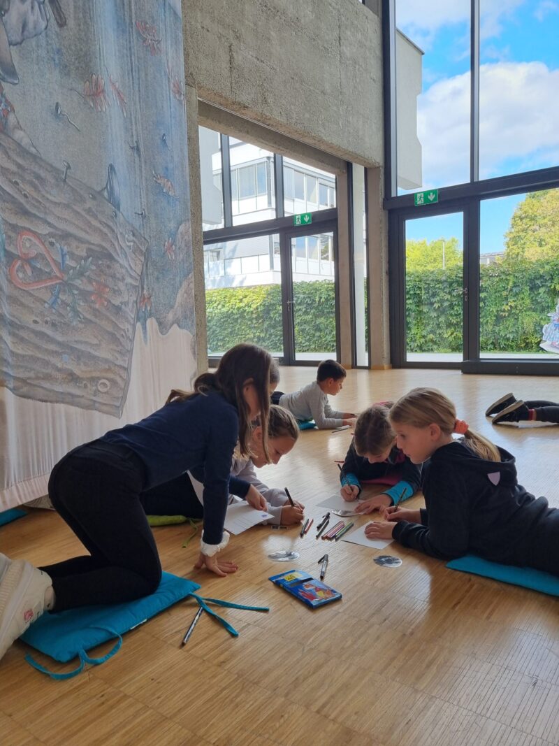 Vsak otrok bo svojo škatlico (npr. od čevljev) spremenil v »mini galerijo«. Vanjo bo prilepil risbe, drobne figure ali izreze, ki ga bodo navdihnili na razstavi. Na koncu bomo dodali še domišljijske obiskovalce, vse škatlice pa sestavili v skupno »otroško galerijo«.