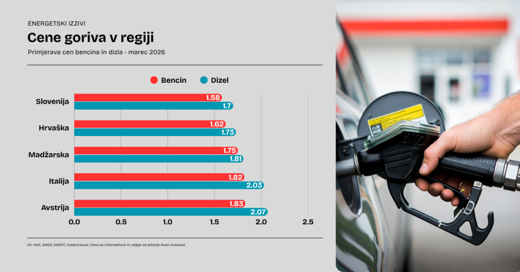 Cene goriva v Sloveniji in sosednjih državah so pod močnim vplivom globalnih geopolitičnih izzivov, zlasti vojne na Bližnjem vzhodu po ameriško-izraelskih operacijah.