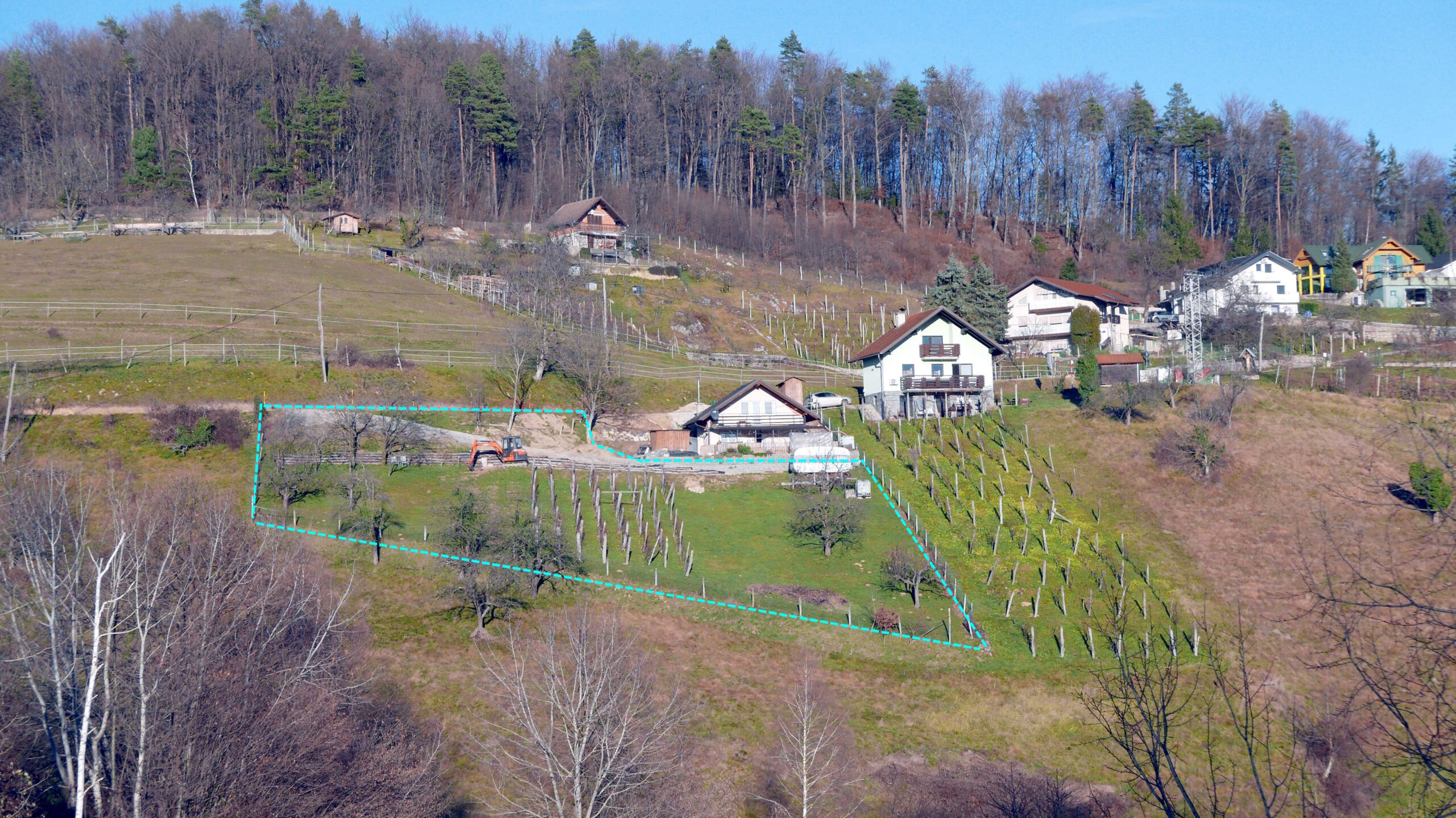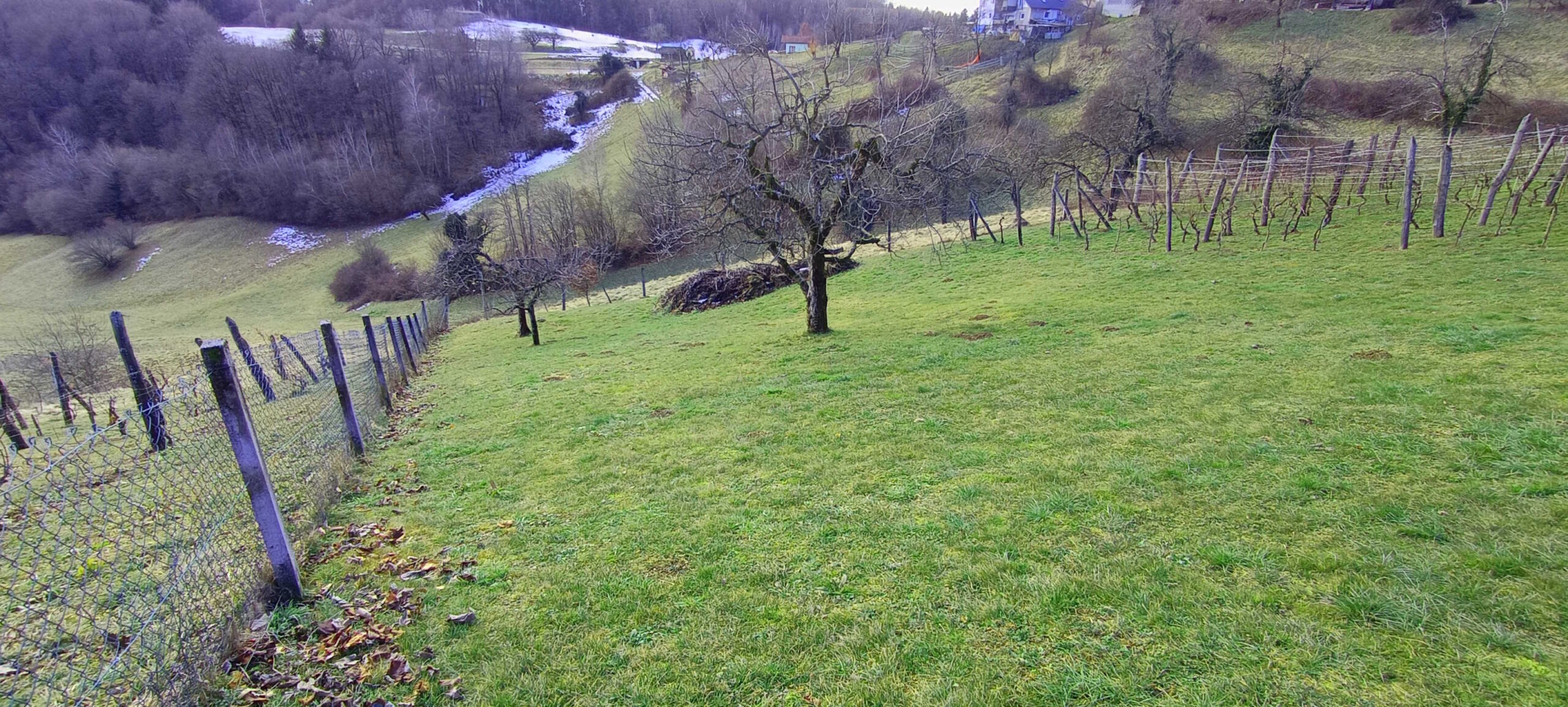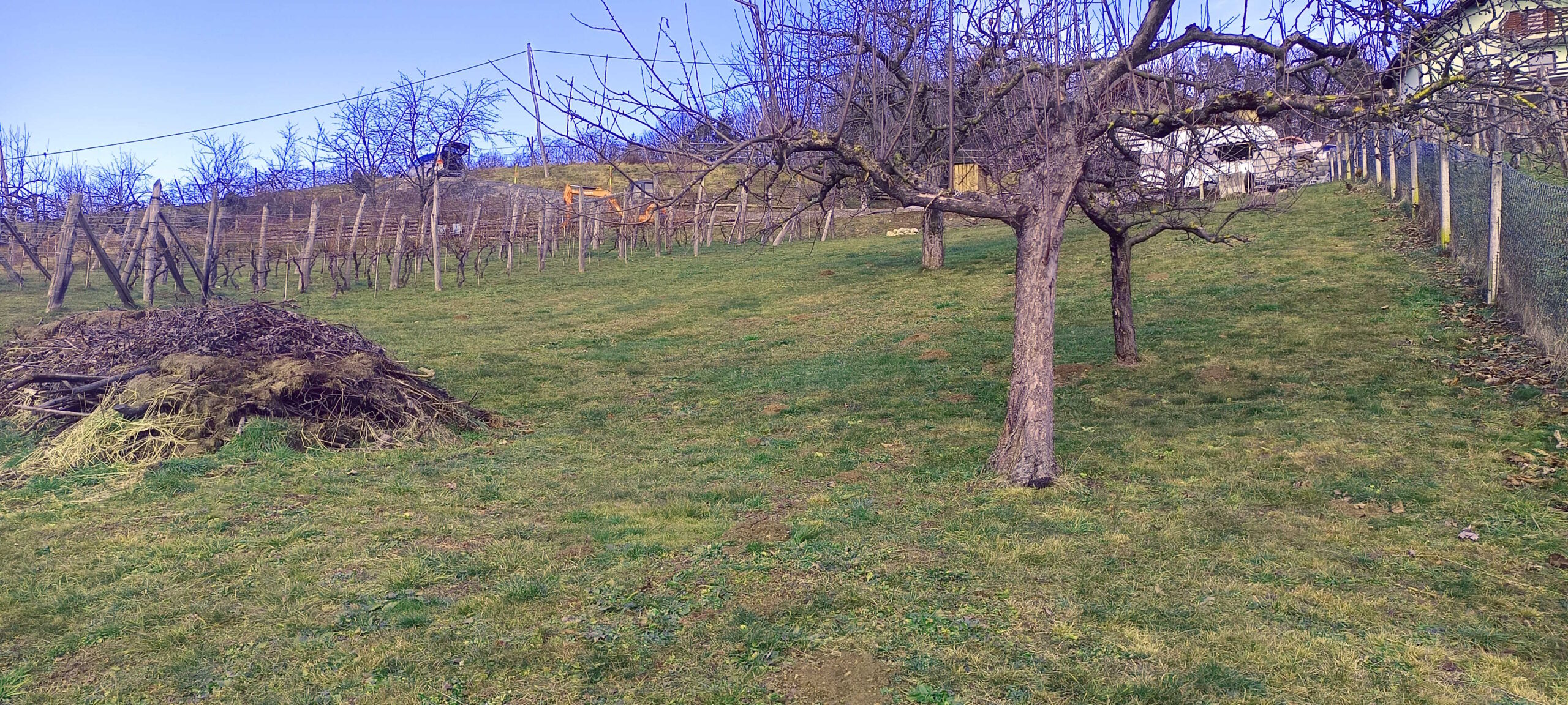Na parceli je trenutno zasajenih cca 15 sadnih dreves (jablane, hruške, slive, češnje, fige, orehi) in vinograd cca 120 trsov.