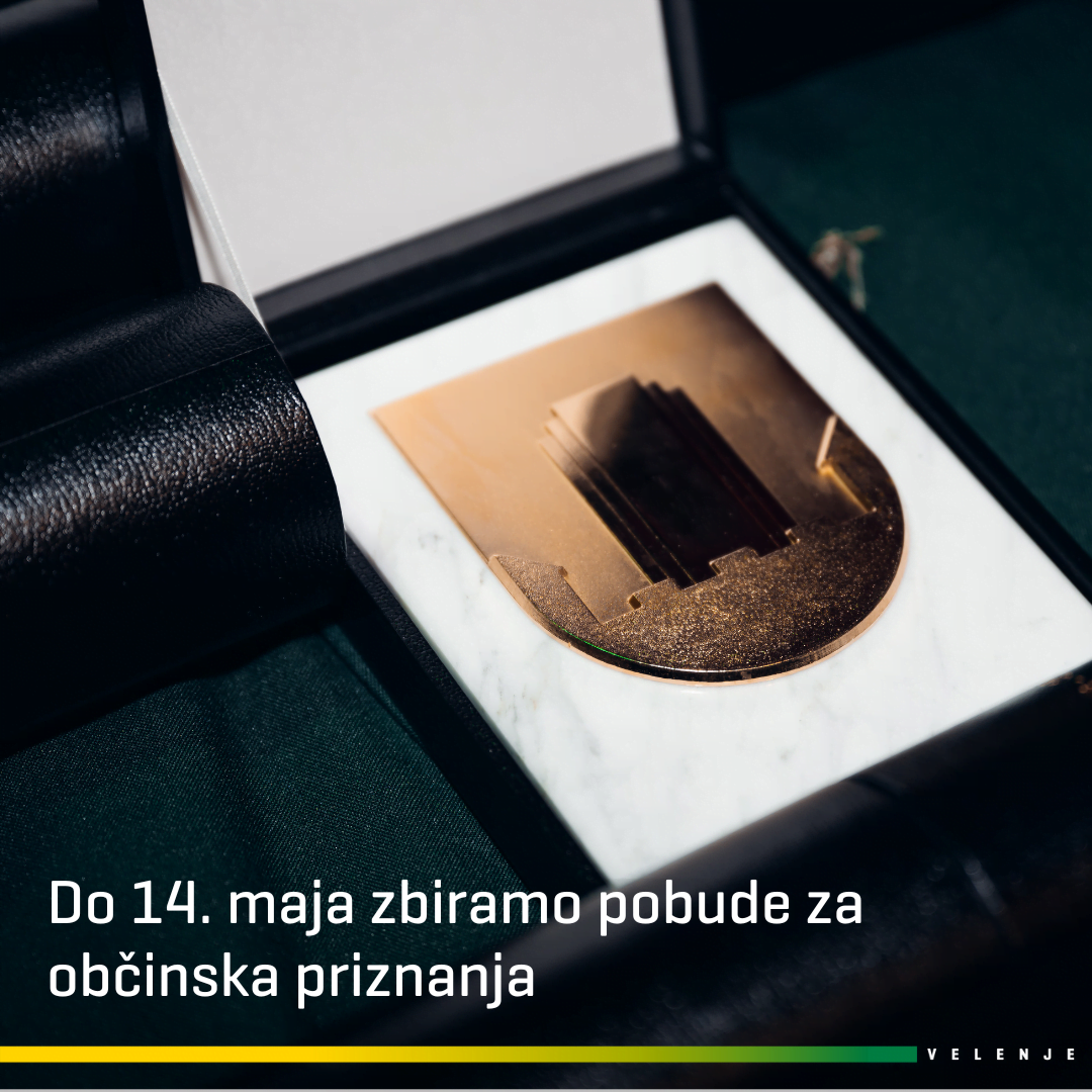 Komisija za priznanja, ki pobude za podelitev priznanj Mestne občine Velenje zbira do 14. maja, je za leto 2024 razpisala naslednja priznanja: ambasador Mestne občine Velenje, grb Mestne občine Velenje in plaketa Mestne občine Velenje. Pobude lahko pošljejo občani Mestne občine Velenje, združenja občanov, ki delujejo v Mestni občini Velenje, in pravne osebe s sedežem v Mestni občini Velenje. Obvestilo o zbiranju pobud za podelitev priznanj v letu 2024 je objavljeno na spletnih straneh Mestne občine Velenje www.velenje.si (Za občane/Javne objave in razpisi/Druge objave).