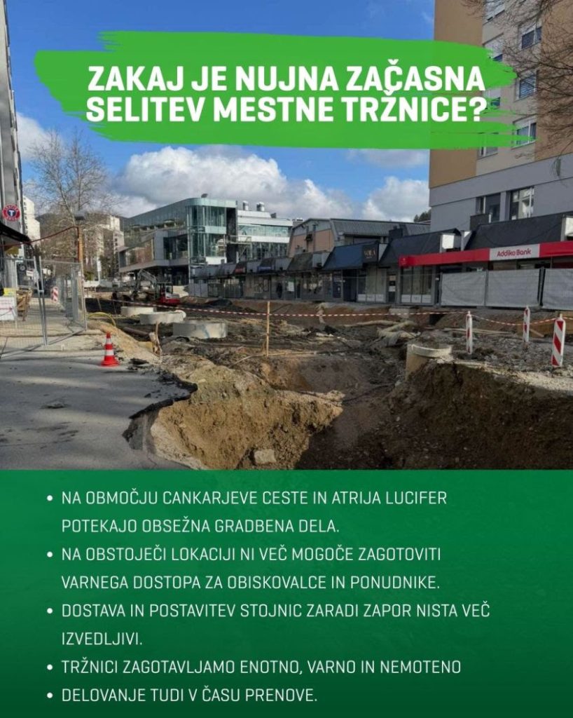 Gre za začasno rešitev v času prenove. Tržnica bo prvič zaživela na nadomestni lokaciji v petek, 6. marca 2026