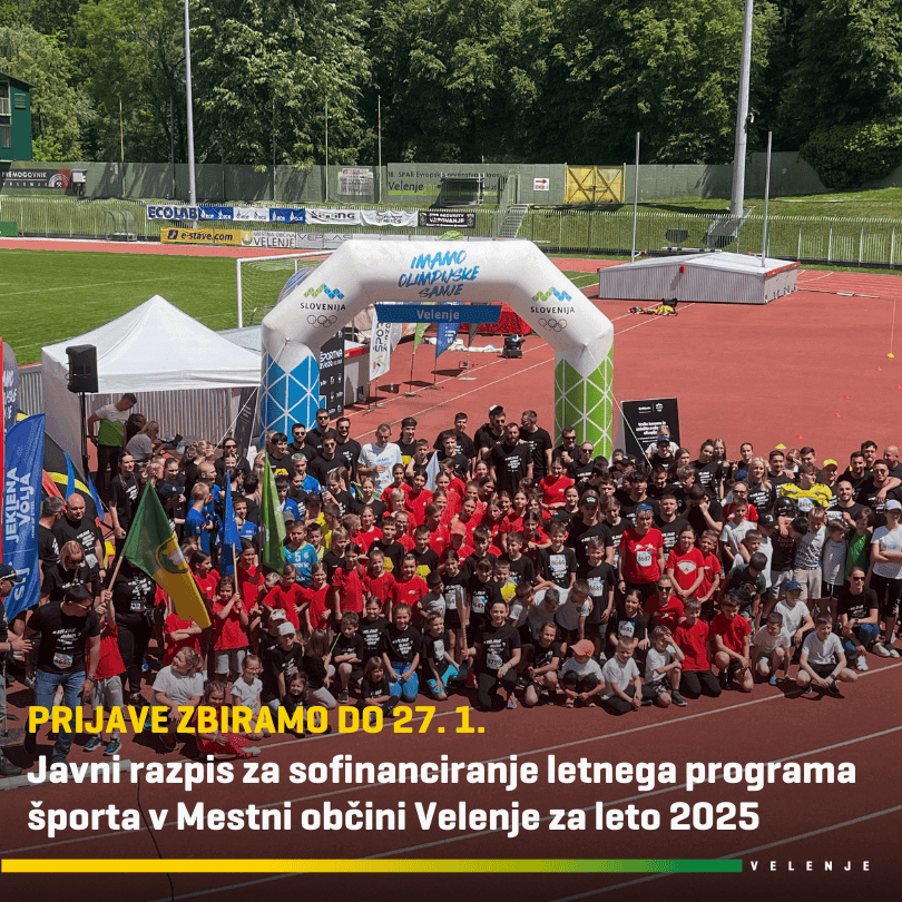 V petek, 3. januarja 2025, smo na spletni strani Mestne občine Velenje www.velenje.si (Javne objave in razpisi) objavili Javni razpis za sofinanciranje izvajanja letnega programa športa v MOV za leto 2025. Iz proračuna Mestne občine Velenje za leto 2025 za sofinanciranje programa športa namenjamo 540.000 evrov, od tega 300.000 evrov za nadpovprečne športne dosežke. Za uresničevanje javnega interesa v športu se v občini v letu 2025 na področju športa sofinancirajo naslednja področja: športni programi, športni objekti in površine za šport v naravi, razvojne dejavnosti v športu, organiziranost v športu, športne prireditve in športna promocija. Razpis bo odprt do vključno 27. januarja 2025.