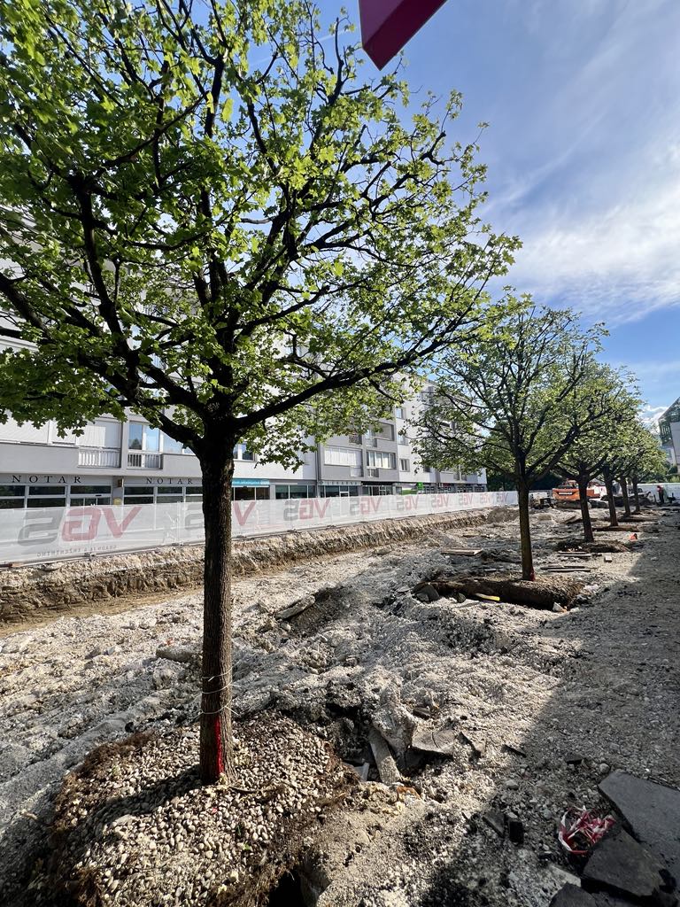 V tem tednu smo presadili 11 dreves vrste maklen na začasno lokacijo na zelenico ob Šaleški cesti. Drevesa bodo po zaključku gradbenih del ponovno umeščena v prenovljeni prostor na Cankarjevi cesti. Za boljšo možnost prilagoditve na presaditev in rast smo jim pred presaditvijo zmanjšali krošnje, koreninski sistem pa obdelali z mikoriznimi glivami, ki pripomorejo k učinkovitejšemu črpanju hranil in vode iz tal. Po presaditvi so bila drevesa zalita, zaščitena s sekanci in obkrožena z grebeni za zadrževanje vlage. Zalivanje se bo nadaljevalo vsakih nekaj dni, na začasni lokaciji pa bodo ostala predvidoma do pomladi 2026.