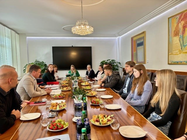Danes zjutraj je župan Mestne občine Velenje Peter Dermol na zajtrk v mestno hišo povabil mlade raziskovalce, ki so letos pri Gibanju Mladi raziskovalci za razvoj SAŠA regije pripravili raziskovalne naloge z zelenimi temami. Ker je letos Velenje nosilec naziva evropski zeleni list, smo se že kmalu po prejetju naziva povezali z gibanjem ter jih pozvali, da takšne raziskovalne naloge še posebej spodbujajo in so jih pripravili kar devet. Župan se je mladim raziskovalcem, ki so obiskali mestno hišo, zahvalil, jim čestital in povedal, da imamo v Velenju v prihodnje še veliko izzivov, za katere bomo najboljše rešitve poskušali iskati prav zaradi mladih, ki so prihodnost Velenja. Na podlagi ene raziskovalne naloge bomo vzpostavili aplikacijo, s katero bomo predstavili krožno pot mimo 12 dreves v centru Velenja.