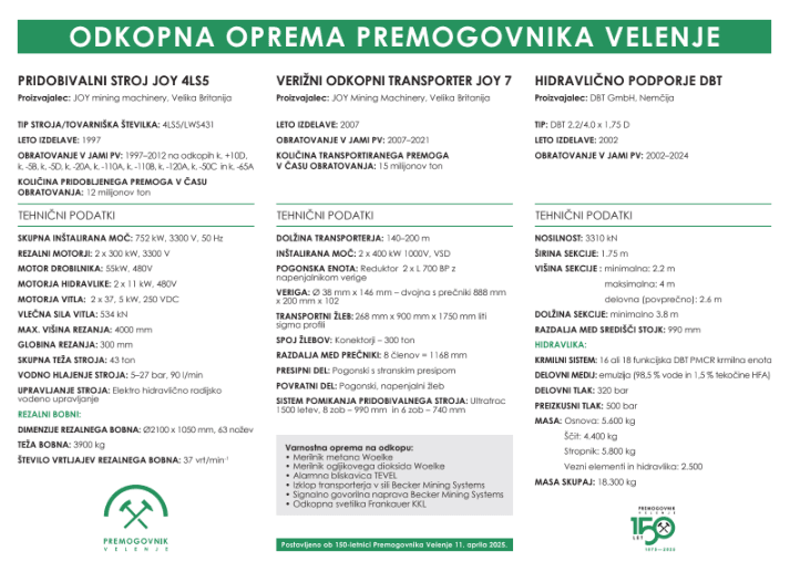 strojev in opreme. Za obratovanje v jami Premogovnika Velenje so ga našim tehničnim