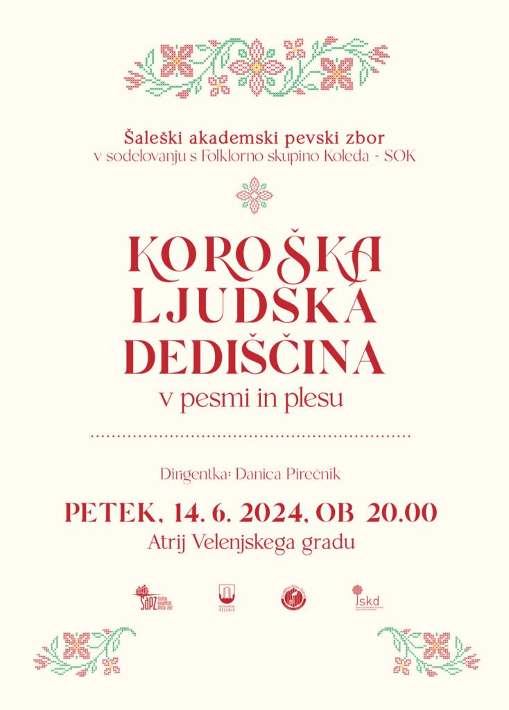 V petek, 14. junija, pripravljajo ob 20. uri na Velenjskem gradu koncert Šaleškega akademskega pevskega zbora z naslovom Koroška ljudska dediščina v pesmi in plesu. Zbor je pod vodstvom zborovodkinje Danice Pirečnik za koncert pripravil izbor najlepših in najtehtnejših del koroških ljudskih pesmi, k sodelovanju pa so povabili tudi člane folklornega društva Koleda – »SOK«, ki bodo izvedli nekaj znanih koroških plesov iz Ziljske doline.