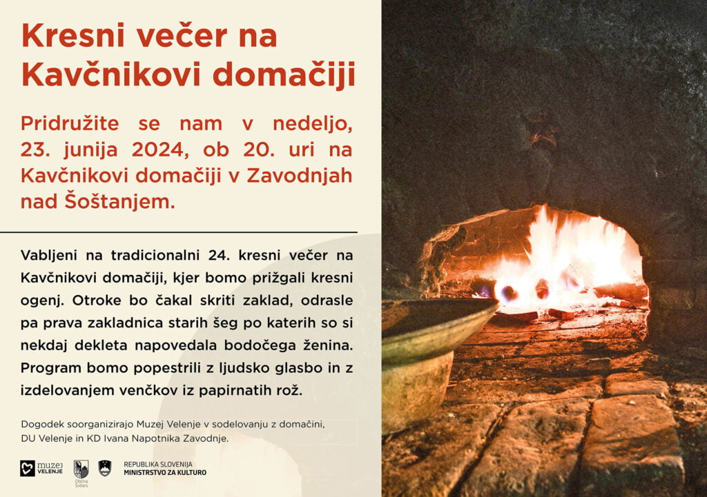 V nedeljo, 23. junija, velenjski muzealci vabijo ob 20. uri na Kavčnikovo domačijo na tradicionalni Kresni večer. Na najkrajšo noč v letu bodo prižgali tradicionalni kresni ogenj. Večer oziroma noč, ki ima po starem verovanju prav posebno moč, bodo popestrili pevci, godci in mlada dekleta, ki si na ta večer po starih šegah napovejo svojo prihodnost glede možitve.