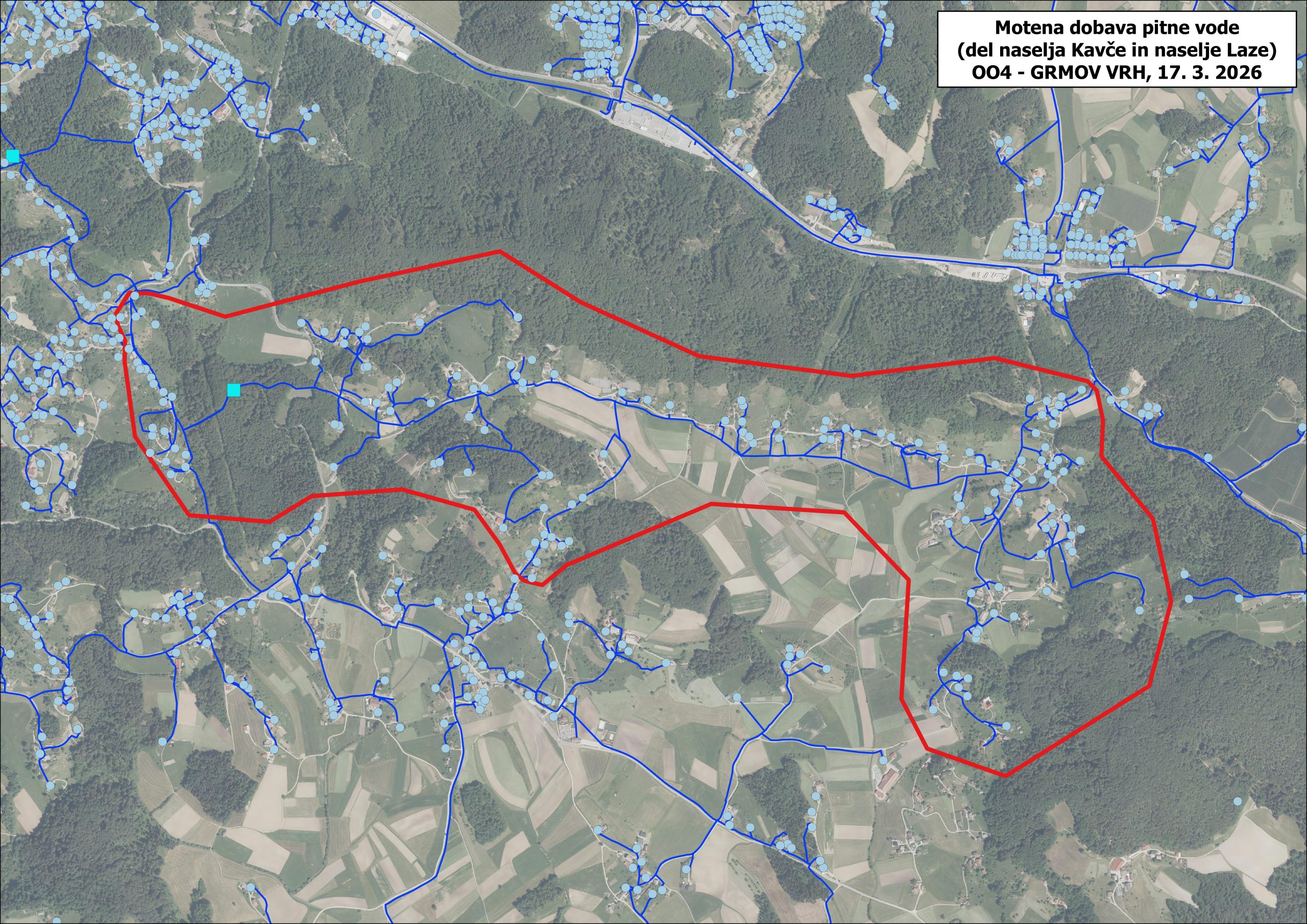 Komunalno podjetje Velenje obvešča uporabnike v delu naselja Kavče in v naselju Laze v Mestni občini Velenje, da bo v torek, 17. 3. 2026, med 8. in 15. uro zaradi nujnih vzdrževalnih del na javnem vodovodu prekinjena oziroma motena dobava pitne vode.