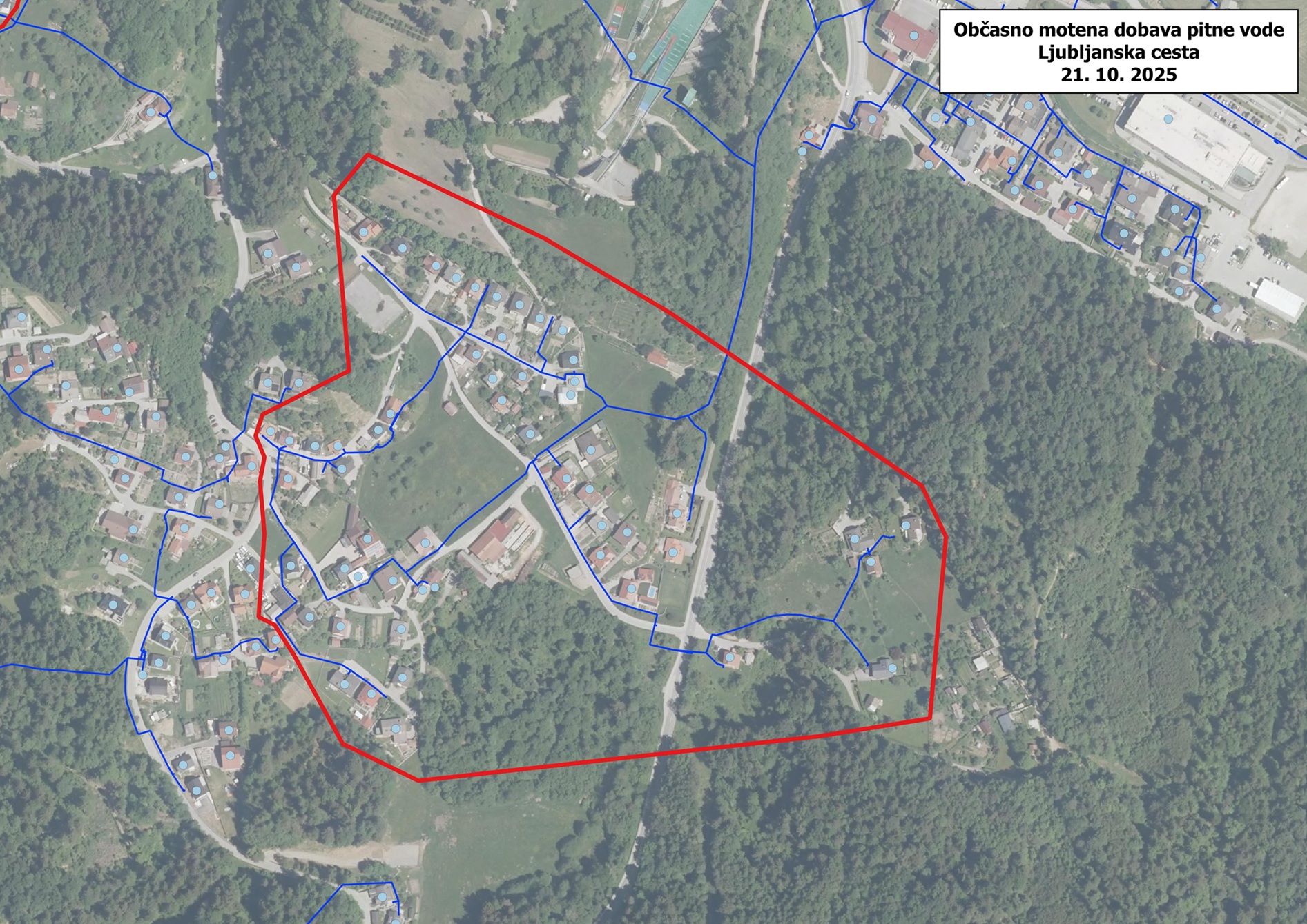Komunalno podjetje Velenje obvešča uporabnike na območju Ljubljanske ceste v mestni občini Velenje, da bo v torek, 21. 10. 2025, med 7. in 16. uro, občasno motena dobava pitne vode zaradi nujnih vzdrževalnih del na javnem vodovodu.
