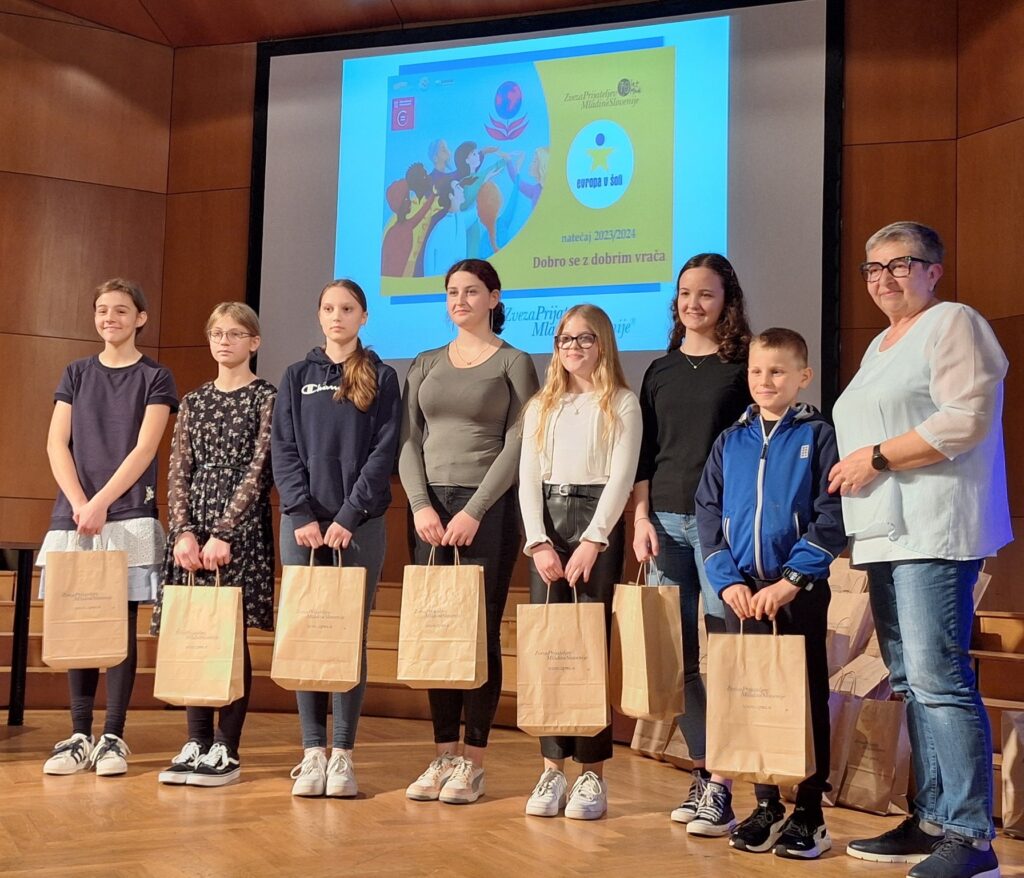 En dan pred Dnevom Evrope, v sredo, 8. maja, je v Celju potekal slavnostni zaključek nacionalnega natečaja Evropa v šoli za šolsko leto 2023/2024, ki ga že 19 let pripravlja Zveza prijateljev mladine Slovenije (ZPMS). Medobčinska zveza prijateljev mladine (MZPM) Velenje je regijski koordinator projekta za Savinjsko-Šaleško področje, v tem šolskem letu pa smo prevzeli koordinacijo tudi za mariborsko območje. V natečaju smo bili tudi letos zelo uspešni. V Celje so peljali avtorje del, ki so jih poslali na nacionalni nivo natečaja, med njimi so bili tudi nagrajenci.
