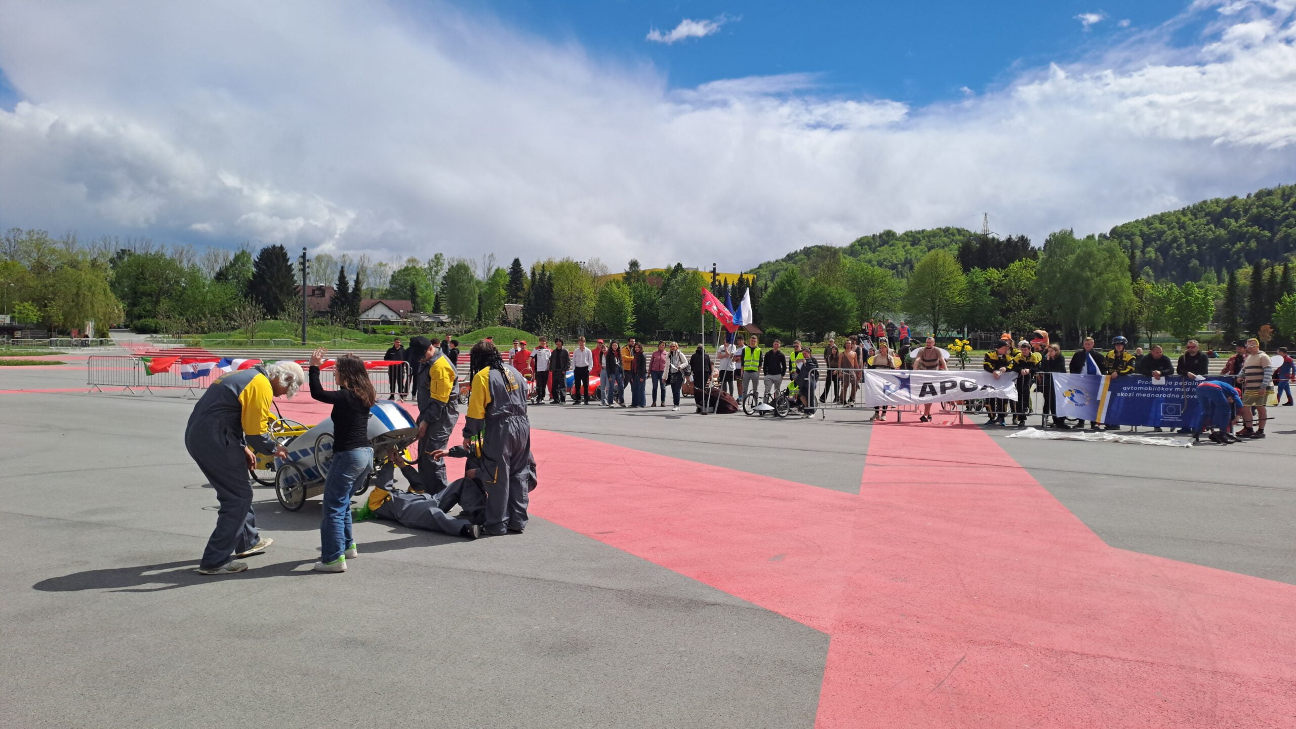 Na Visti v Velenju je bilo v soboto tekmovanje v vožnji s pedalnimi avtomobili. Pomerilo se je 56 tekmovalcev s 14 pedalnimi avtomobili iz Slovenije, Francije, Italije in Češke. V projektu Zavoda APGA so sodelovali tudi partnerji s Portugalske, Hrvaške in Turčije. V Italiji in na Češkem so programi izdelave pedalnih avtomobilov precej razširjeni, vključeni so tudi v programe srednjih tehniških šol, v Franciji za razvoj te panoge skrbijo društva ter francoska zveza društev, ki prav tako sodeluje v projektu EU RIDE. Na tekmovanju so sodelovali tudi dijaki Šole za strojništvo, geotehniko in okolje ŠC Velenje in dijaki Srednje šole Ravne na Koroškem. Skupaj z mentorji so dijaki izdelali pedalne avtomobile in se z njimi odpravili na šest tekmovanj, ki so potekala v Italiji, na Češkem in v Franciji.Na tokratnem tekmovanju v Velenju je v kategoriji kreativa zmagala skupina Retro iz Italije. Najhitrejša je bila skupina Spiderman iz Francije. Skupna zmaga pa je pripadla skupini La sorciere – The witch iz Francije. Velenjski rudarji so bili 8. Skupaj so prevozili 82 krogov.