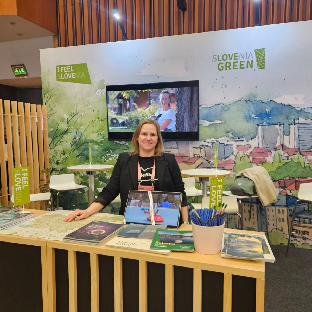 Velenje se je na konferenci predstavilo tudi skozi konkretne zelene prakse mesta. Udeležence smo nagovarjali s kratkimi predstavitvami, med njimi s promocijskim videom Velenje vabi, vsebinami Za zeleno Velenje, predstavitvijo edinstvenih doživetij Slovenije Skrivnosti potopljenih vasi in Velenje Underground ter drugimi primeri trajnostnih praks. Z omejeno uporabo promocijskih materialov smo poudarili tudi trajnosten pristop k informiranju.